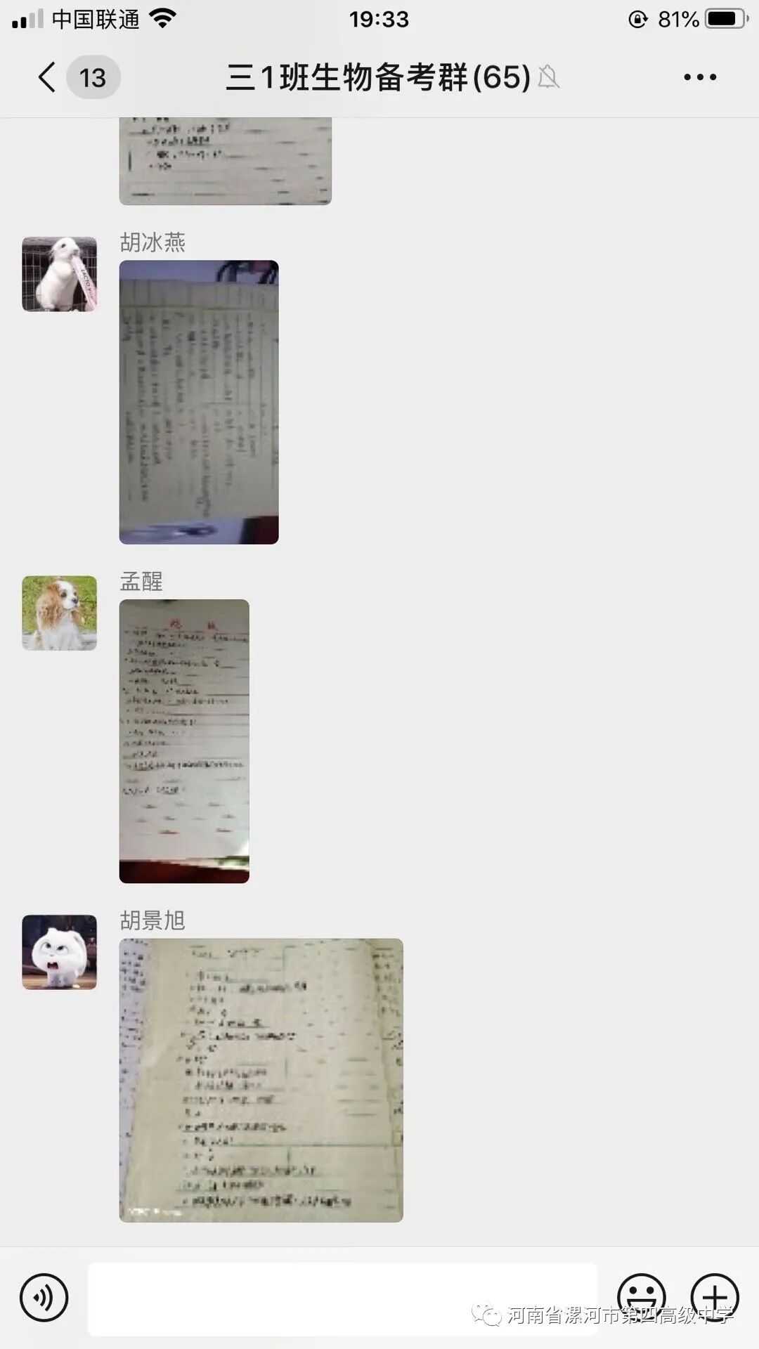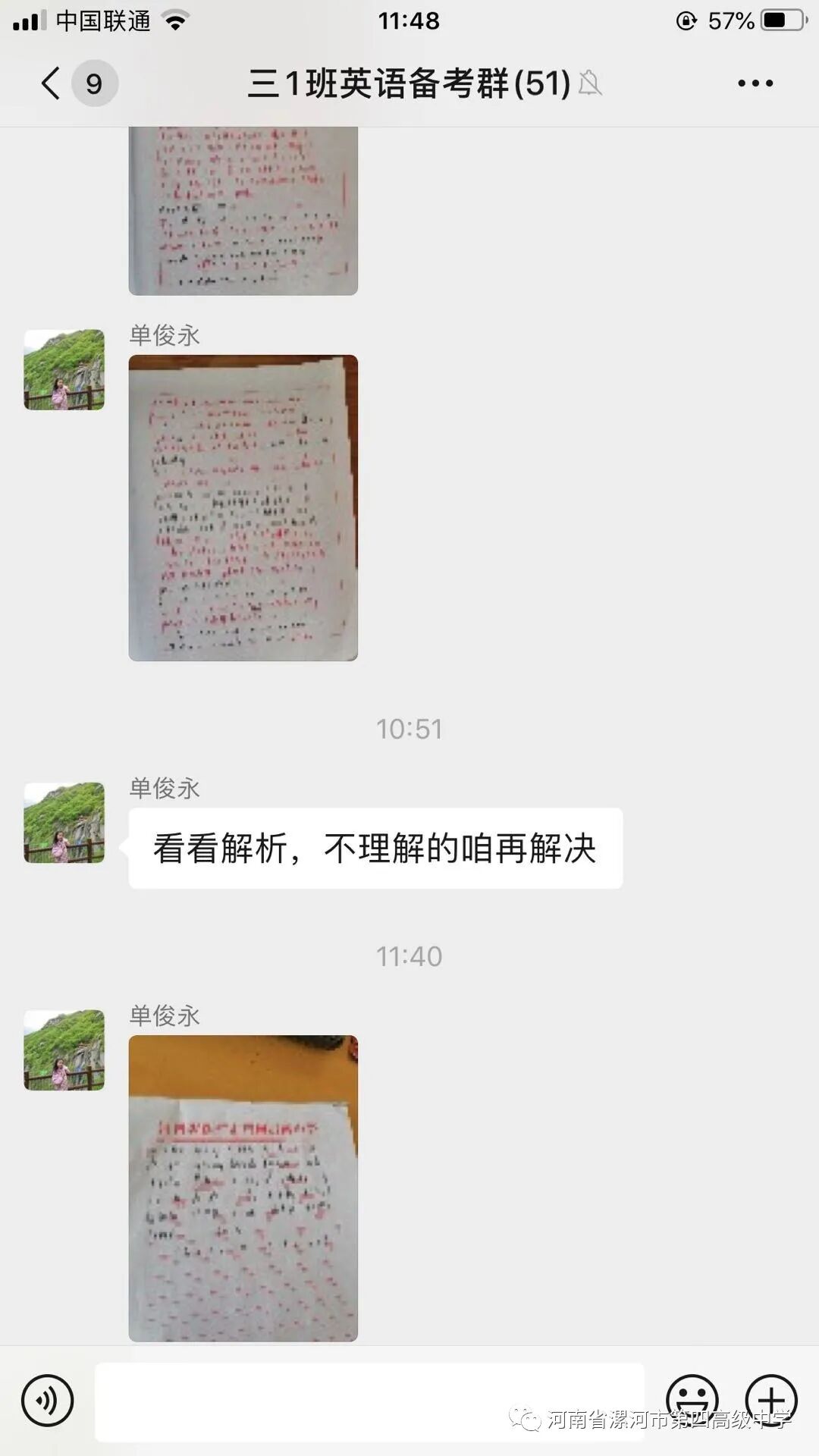 袁老师虽然不会使用钉钉等即时通讯工具,他每天的辅导工作都是通过微信完成。发送作业,批改作业,集中解决学生疑难问题。微信暂时没有直播功能,袁老师就时刻关注群信息,逐个解决,从不怕麻烦。
