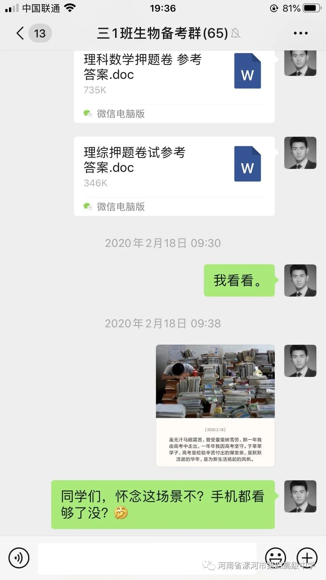 十年磨一剑,六月试锋芒。一场突如其来的瘟疫,打乱了全国学子追梦的步伐。为响应上级教育部门“停课不停学”的号召,阻止疫情进一步向校园蔓延,漯河四高高三全体教职员工在学校及年级组精心指导下,务实勤勉、尽职尽责,依托网络教育资源开展线上教学工作,他们用自己丰富渊博的学识、敬业无私的工作态度,赢得了社会认可,学生信任。