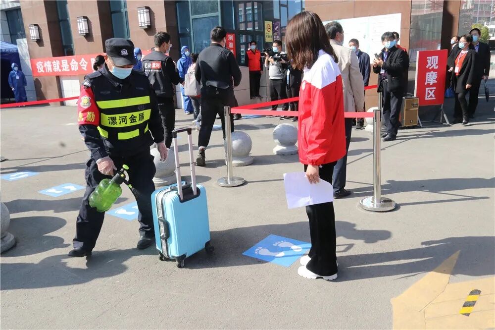 发现体温高于37.3℃的学生后,学校疫防办人员引导发热学生到旁边隔离区域,经询问,报到前14天内没有到过(途径)疫情重点地区或与确诊、疑似病例接触史,发热原因不明。学校派专车、疫防办专人陪同到漯河市第二人民医院发热门诊就诊。其他同学继续有序报到入校。