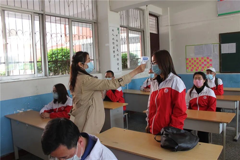 学生排队进行测温后进入教室。课堂上,一名学生咳嗽剧烈,任课教师随即为其测量体温,发现该生体温高于37.3℃。报告学校疫防办后,疫防办工作人员将学生带到学校隔离室,经询问,该生此前14天内没有到过(途径)疫情重点地区或与确诊、疑似病例接触史,发热原因不明。