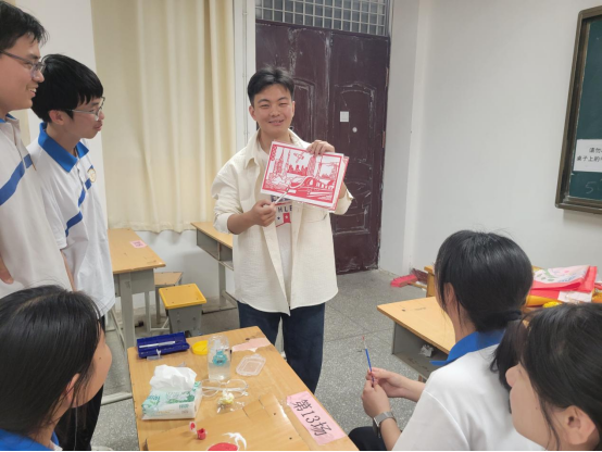 活动筹备阶段,社团同学们便全身心投入到剪纸与油画的准备工作中。为让军旅主题剪纸生动逼真,同学们广泛收集海军资料,从战舰结构到军人姿态逐一研究。他们围坐讨论设计图案,反复修改,力求每个细节都展现海军风采。挑选红纸后,便精心练习 。 有的同学为刻画出军舰精致轮廓,不断调整剪纸刀角度,哪怕手指酸痛也不放弃,只为在活动中呈现最佳效果。