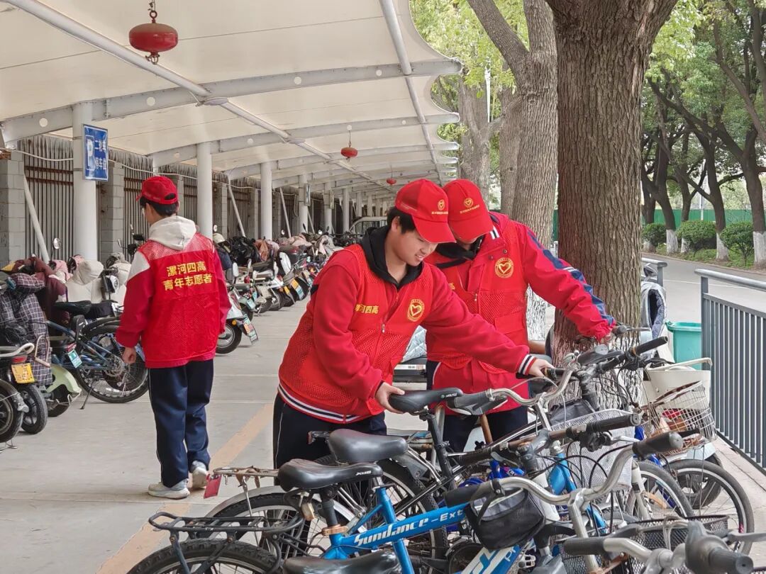志愿者们利用课余时间参与校园非机动车规范停车活动,他们用心整理、规范摆放,使校园环境焕然一新。他们忙碌的身影是一道道靓丽风景线,生动诠释了“奉献、友爱、互助、进步”的志愿精神,启发师生共同维护校园秩序,守护文明校园。