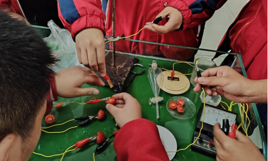 番茄变身“电力工厂”——漯河四高化学之光社团开展“水果电池”趣味实验活动