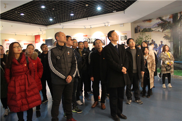上午十点,青年教师们来到竹沟革命纪念馆。抗日战争初期,竹沟是中共中央中原局、河南省委所在地,刘少奇、李先念、彭雪枫、张劲夫、张爱萍、张震、方毅、朱理治、陈少敏等老一辈无产阶级革命家都曾在这里工作和战斗过,竹沟也是新四军二师一部、四师、五师的发祥地和三师、七师部分骨干力量的出发地 。通过聆听讲解员的介绍及参观展厅中的照片、史料,大家了解了河南人民积极开展武装斗争,开辟豫南桐柏山区革命根据地,前仆后继、浴血奋战,最终夺取抗战最后胜利的革命历程。青年教师们不时停下脚步,上前仔细端详,无不为先烈们不屈不挠、顽强抗争的革命精神所感动。
