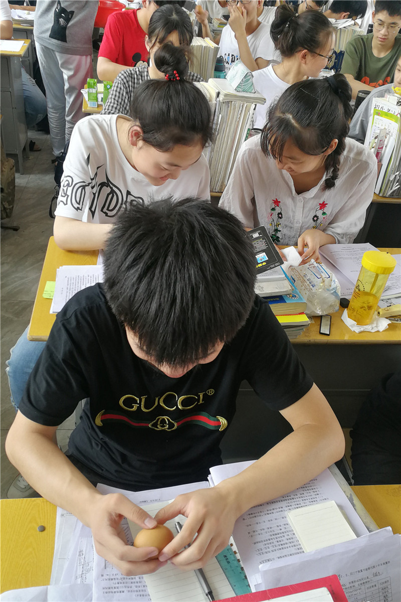 2019年高考第一天恰逢端午佳节。6日早晨,高三年级班主任为在孩子们煮上了热腾腾的茶叶蛋,祝福考生圆圆满满。